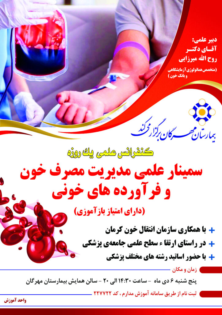 برگزاری سمینار علمی مدیریت مصرف خون و فرآورده های خونی به گزارش روابط عمومی بیمارستان ادامه » حجت زاده